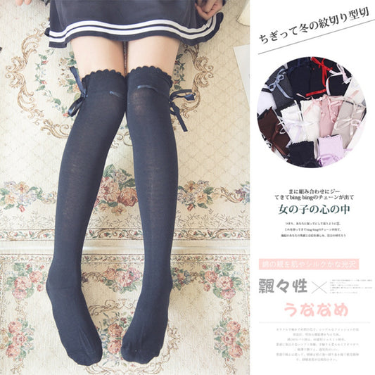 CHAUSSETTES MONTANTES FEMME NOIR RUBAN