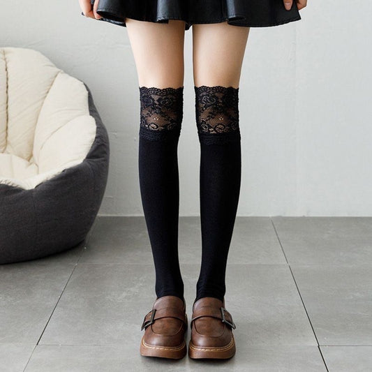 CHAUSSETTES MONTANTES FEMME NOIR DENTELLE