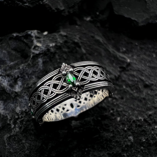 BAGUE PIERRE VERT ACIER ECAILLES SERPENT