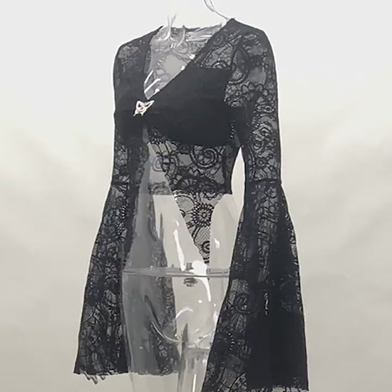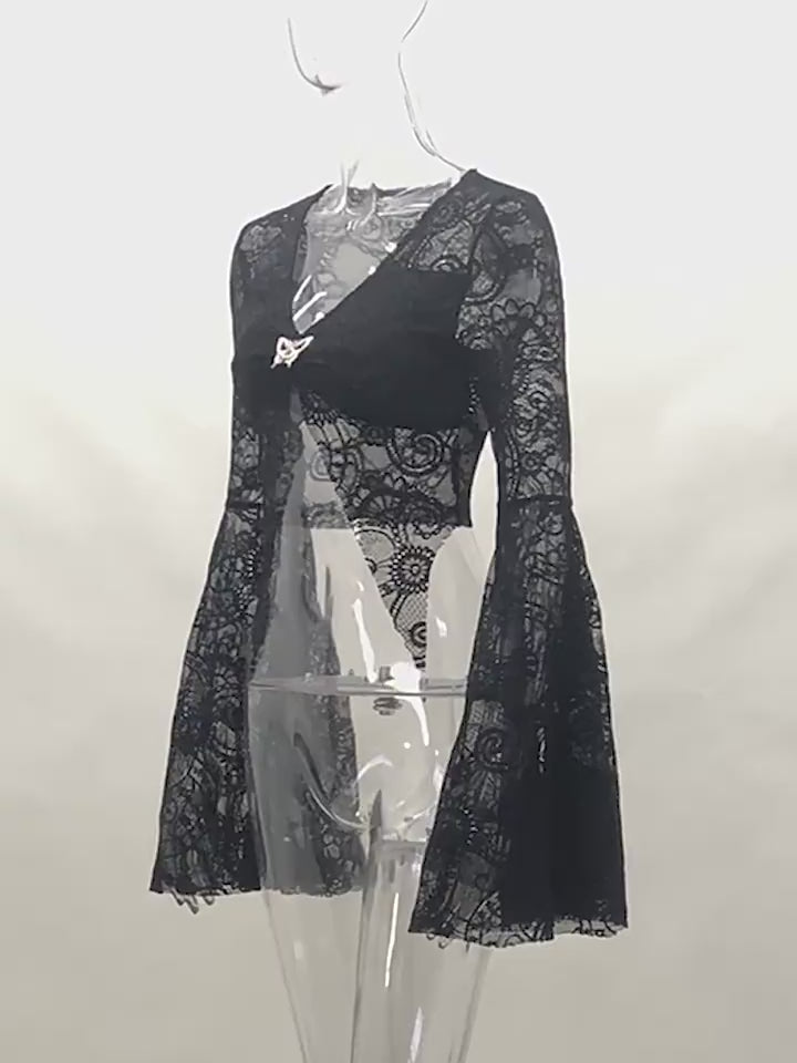 Modèle Boléro style gothique romantique en manche longue, matière en dentelle légère résistante, se ferme avec les agrafes en métal. Taille petite.