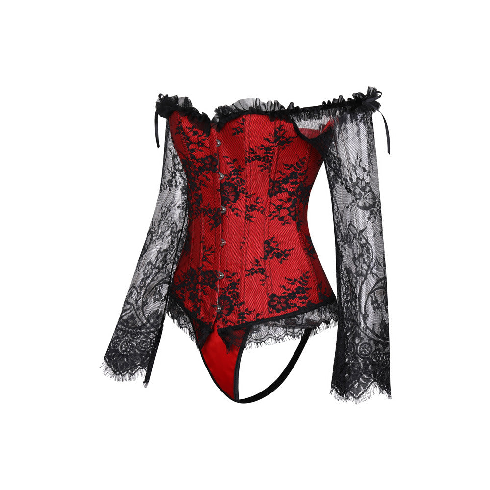 CORSET ROUGE PUNK GOTHIQUE DENTELLE