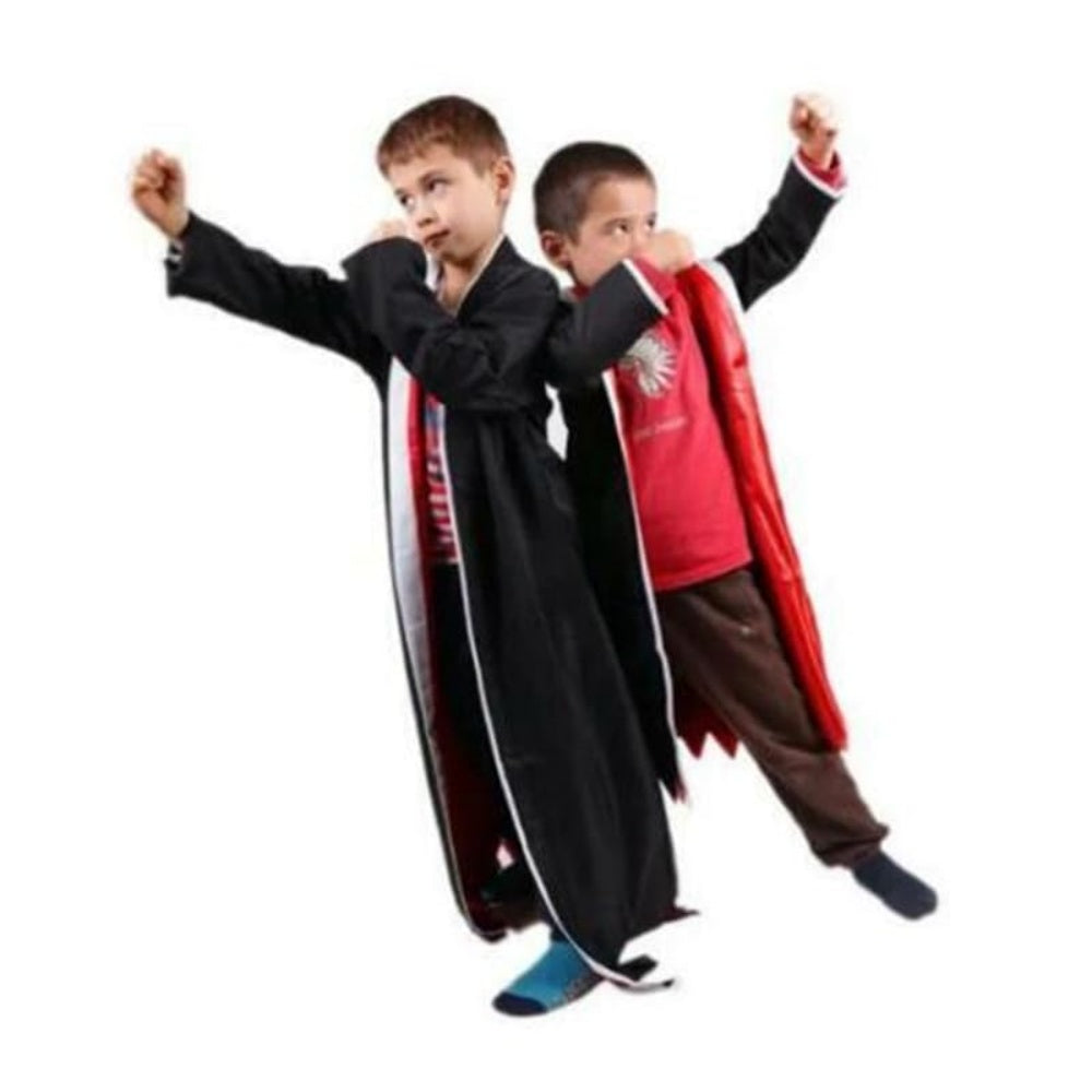Matière coton et polyester, solide et épaisse, dublure rouge. Manteau + perruque.
